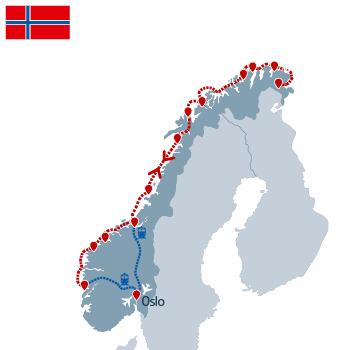 Die Reise mit dem Hurtigruten Postschiff ist zu jeder Jahreszeit ein unvergessliches Erlebnis. Kommen Sie an Bord eines der 7 Postschiffe der Hurtigruten, die jeden Tag den Hafen von Bergen mit Passagieren, Fracht und natürlich Post an Bord verlassen, um in 12 Tagen 2.500 Seemeilen zurückzulegen. Dabei geht die Seereise entlang der atemberaubenden norwegischen Fjordlandschaft bis nach Kirkenes an der russischen Grenze und wieder zurück.