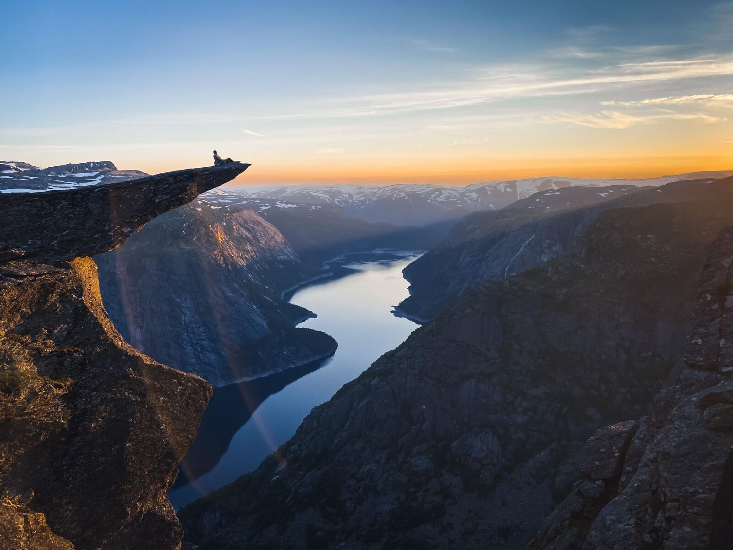 Der Sørfjord ist ein sehr schöner Nebenarm des Hardangerfjords. Die gesamte Hardangerregion wird aufgrund der vielen kleinen Orte mit Obstanbau auch als Obstgarten Norwegens bezeichnet. Überragt wird die Region ebenfalls von dem Gletscher Folgefonna, der südlich von Bergen sich über das Landesinnere bis zur Hardangervidda erstreckt. Machen Sie eine Wanderung durch diese Gegend, in der an vielen Stellen Wasserfälle von noch schneebedeckten Gipfeln ins Tal stürzen. Oder Sie erwandern sich von Røldal am Südostrand der Hardangervidda dieses karge Hochplateau mit Krüppelbirken und Flechten.