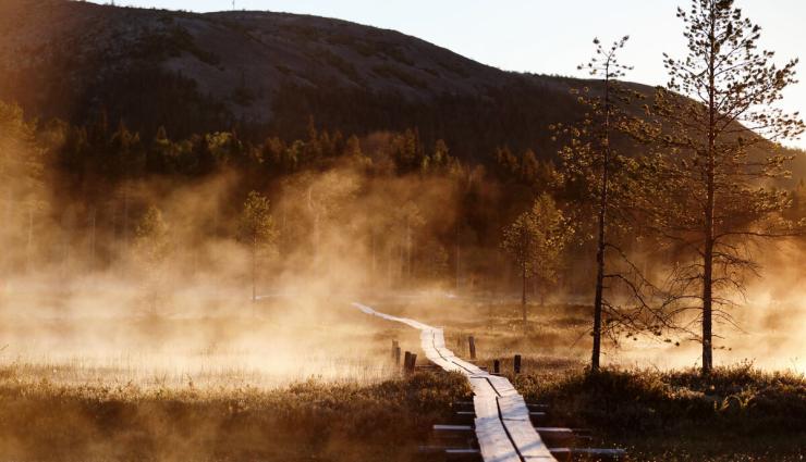 Nur wenige Kilometer nördlich von Rovaniemi passieren Sie heute den Polarkreis. Neben dem trubeligen Einkaufszentrum mit Souvenirshop und Postamt, in dem man den begehrten Sonderstempel bekommen kann, befindet sich hier auch ein Kinderland für die Kleinen. Hauptattraktion ist jedoch das ganzjährig besetzte Büro des Weihnachtsmannes, in dem jährlich über 700.000 Briefe und E-Mails aus aller Welt eingehen. Nach dem quirligen Leben in Rovaniemi können Sie auf Ihrer Fahrt gen Süden die Stille und Einsamkeit Nordfinnlands genießen. Ihr Tagesziel liegt in dem Nationalparak Iso-Syöte und bietet einen wundervollen Ausblick auf diese ursprüngliche Landschaft.