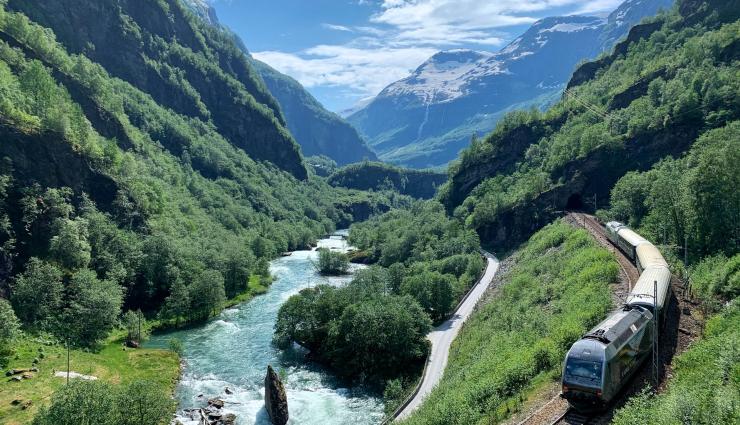 Ein Höhepunkt der Reise: Mit der Flåmbahn geht es von Meereshöhe hinauf ins Gebirge nach Myrdal. Von dort fahren Sie mit der Bergenbahn quer durch Hochgebirgslandschaften, vorbei an Gletschern, Seen und Tälern zurück nach Oslo.