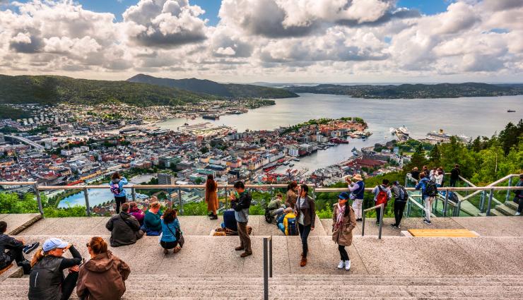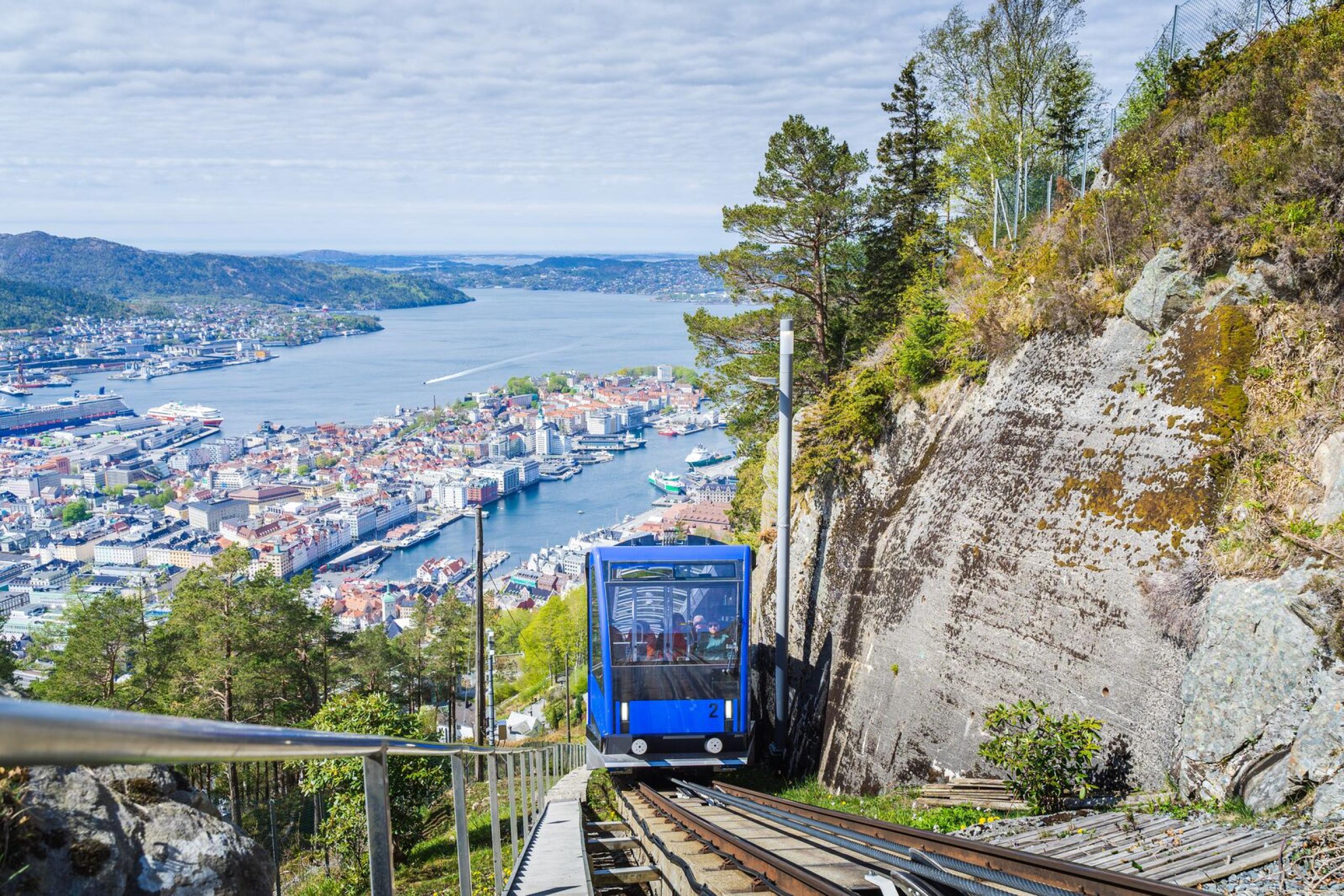 Die Hansestadt Bergen hat viele Höhepunkte: das UNESCO-geschützte Hanseviertel Bryggen, den Fischmarkt und die Fahrt mit der Fløibahn auf den Stadtberg Fløyen – mit traumhaftem Ausblick über Stadt und Fjorde.