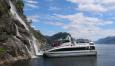 Mit dem Schnellboot geht es hinein in die Fjordwelt, vorbei an steilen Berghängen und Wasserfällen bis nach Balestrand am Sognefjord. Der idyllische Ort besticht mit historischer Holzarchitektur und großartiger Lage direkt am Fjord.